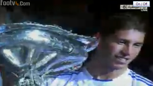 Sergio Ramos e o troféu Santiago Bernabéu,